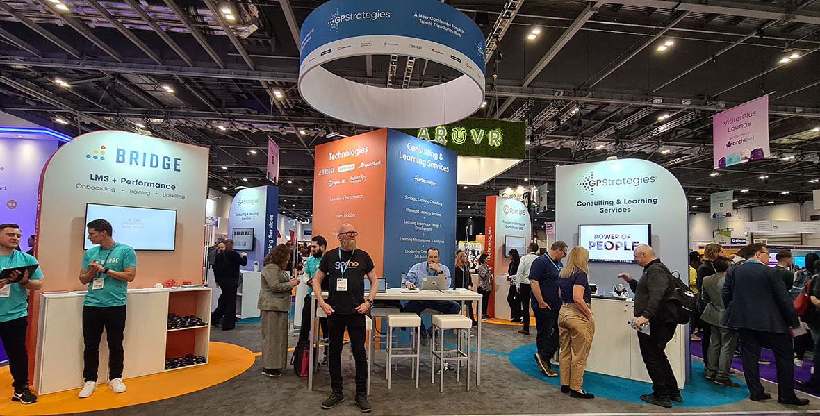 Learning Technologies Group plc, exhibiting at Learning Technologies show at Excel in 2023. Carly Atkinson Events Manager at LTG said “I just wanted to say thank you, the build and the output of the design was amazing. Working with you has been a great experience.”